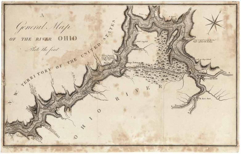 A General Map of the River Ohio by George Henri Victor Collot. 1804 (but issued 1826). Four engraved plates.