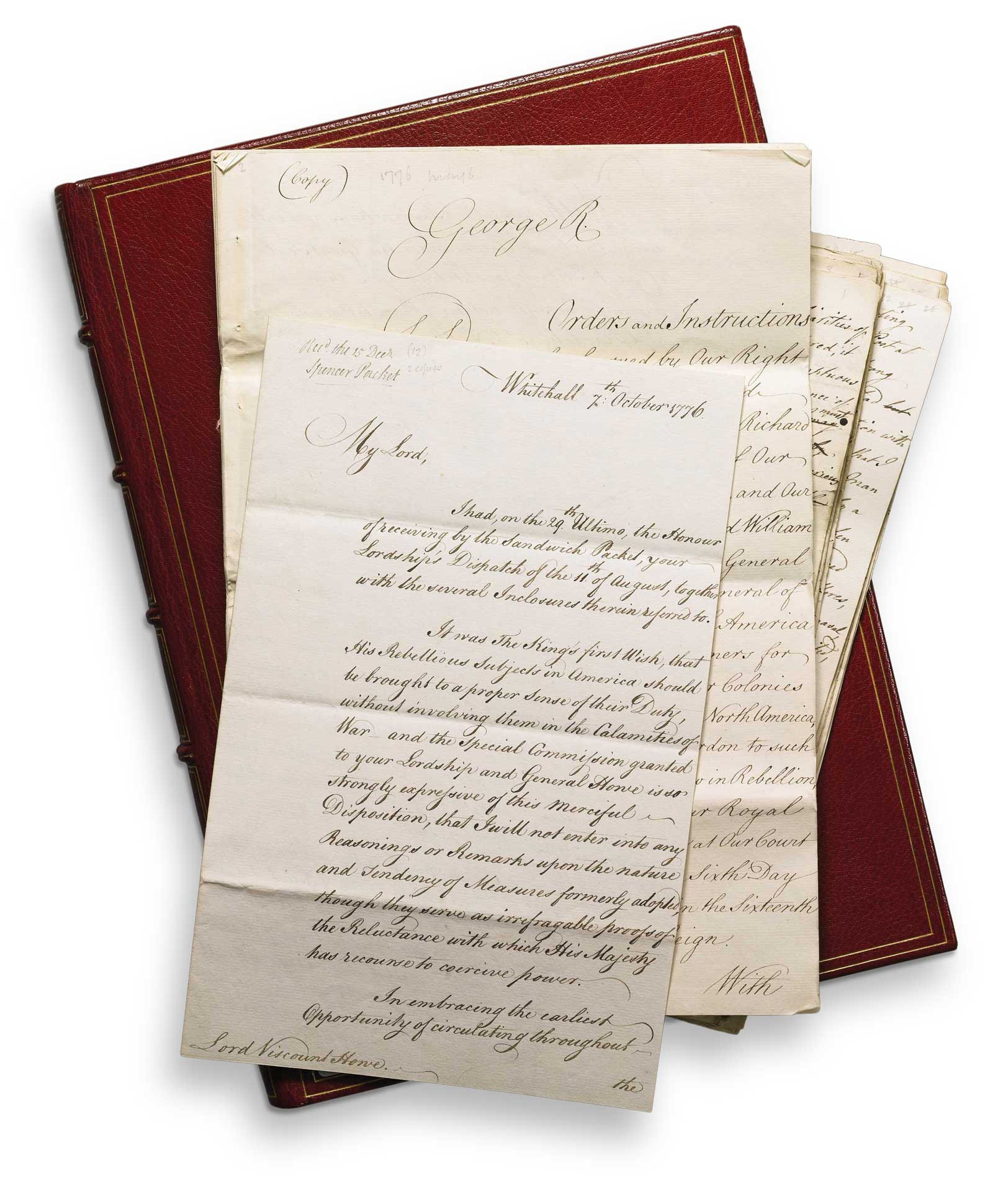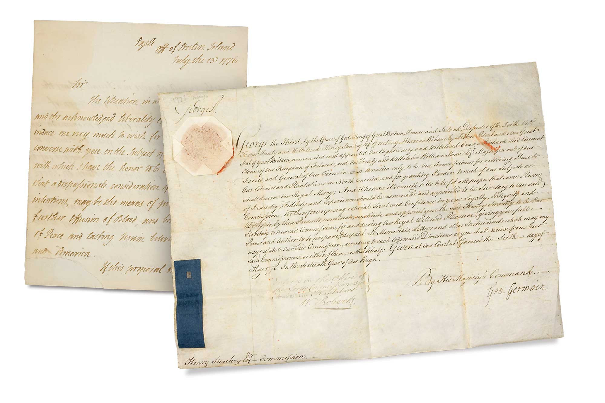 left: Admiral Richard Howe’s letter to George Washington, written on board the HMS Eagle off Staten Island on July 13, 1776. This letter is part of the Clements Library’s William and Richard Howe Papers, which was acquired from Christie’s in 1958, long before it was complemented by the Strachey Papers. Gift of the Clements Library Associates. right: Henry Strachey’s appointment as secretary to the Commissioners for Restoring Peace to America, dated May 1776 and signed by King George III.