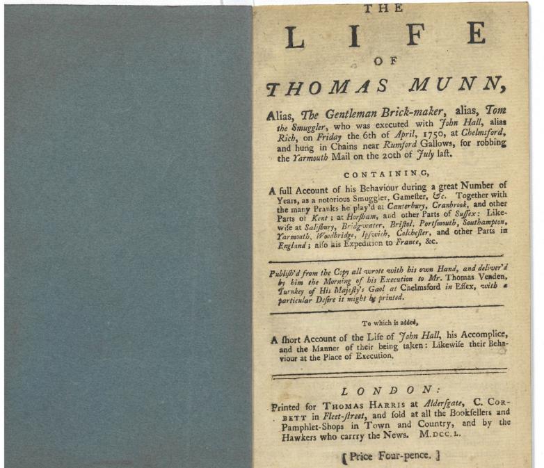 The 1750 publication was immediately of interest to the Horsham Museum, both because of its local interest—Munn was indeed a brick-maker in Horsham—and because of a stunning story he recounts about how the son of his innkeeper slipped into his bed one night and declared, “I love to lie with a naked man.” Munn continues, “He had not been long in Bed but began to act a Part so Contradictory to Nature that I started up in Bed, wanted Words to express my Confusion, Surprise and Passion, at his Propositions.”