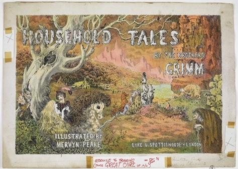 The dust jacket design by Mervyn Peake for Household Tales by the Brothers Grimm.