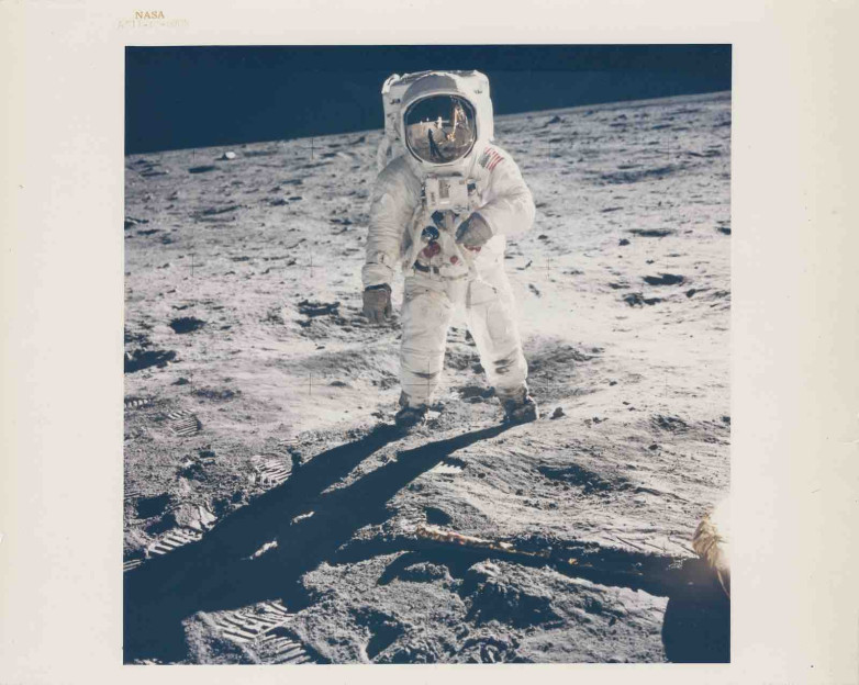 •    the first photograph of a human on another world, captured by Neil Armstrong in the early moments of Apollo 11’s moonwalk, as Buzz Aldrin deployed the Solar Wind Experiment (€3,840)