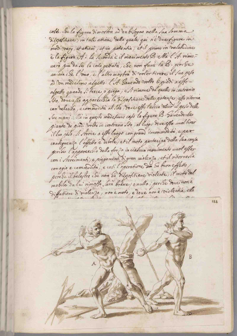 Leonardo da Vinci’s Trattato della pittura (A Treatise on Painting) is a manuscript fair copy produced in the workshop of Cassiano dal Pozzo around 1638–1641. Compiled by Leonardo’s longtime assistant Francesco Melzi, the Treatise remained unpublished until 1651, when it was printed in Paris with illustrations by Nicolas Poussin and Gasparo Berti. This heavily revised copy, once owned by Cassiano dal Pozzo, includes drawings that illustrate chapters “on forceful movements of human limbs” and “on human movement,” offering a glimpse into Leonardo’s enduring influence on art and science.