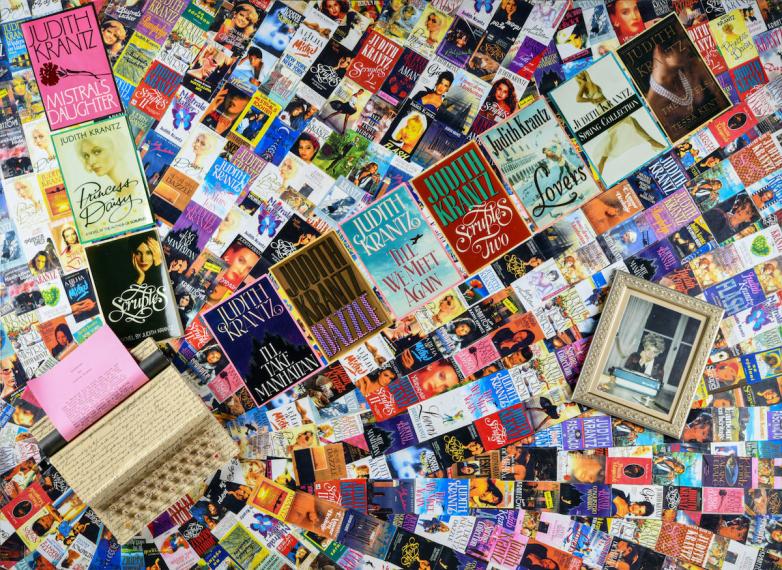 A decoupage of book cover art from the estate of celebrity novelist Judith Krantz will be among the featured items at Abell Auction Co.’s online auction on April 8.