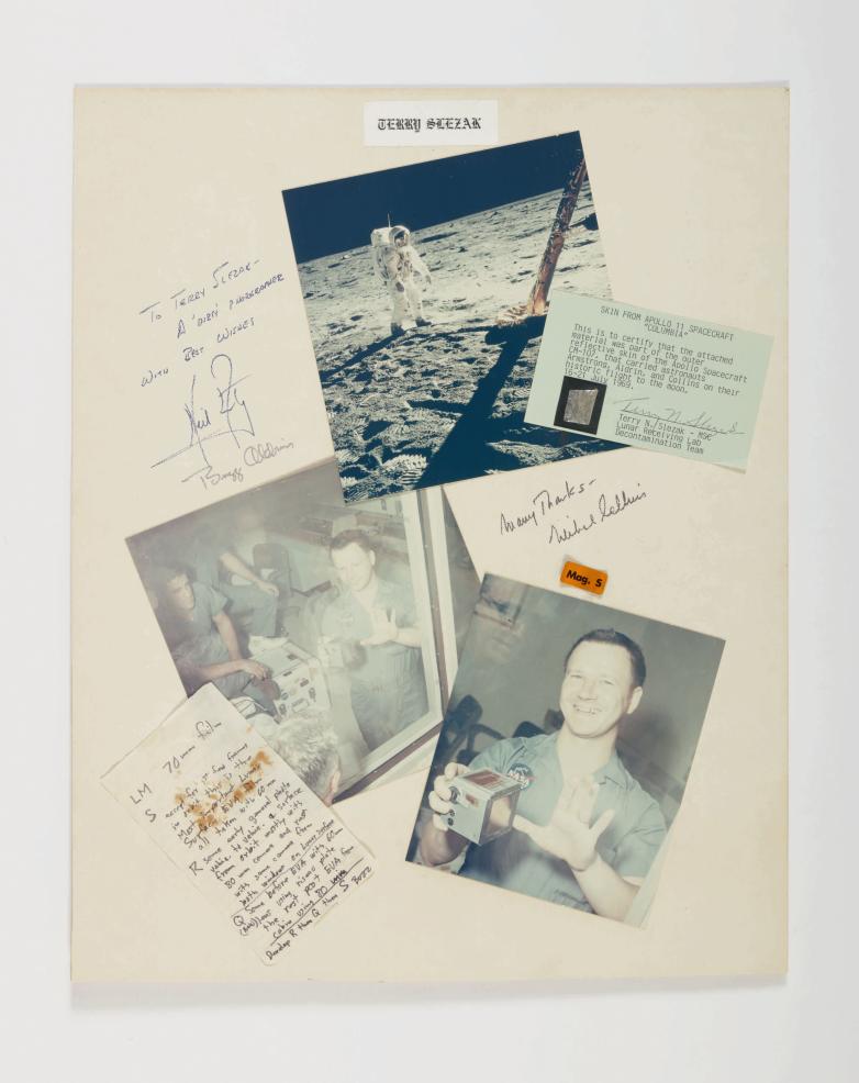 Unique collage of Apollo 11 memorabilia including the first autograph manuscript written on the Moon sold for $225,000 at Sotheby's.