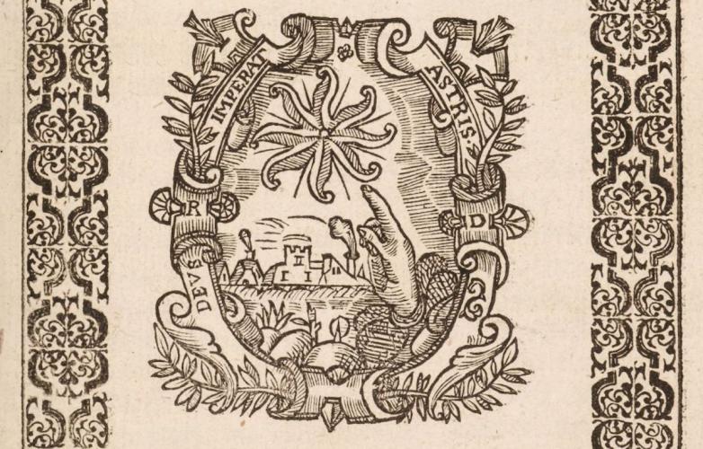 The printer’s device on the title page of A Briefe Description of Universal Mappes and Cardes... (London: Printed by Roger Ward for Thomas Cadman, 1589).