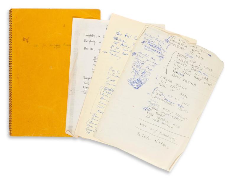 * seven leaves of autograph manuscript lyrics to Don’t Stop Me Now, estimated at £120,000-180,000
