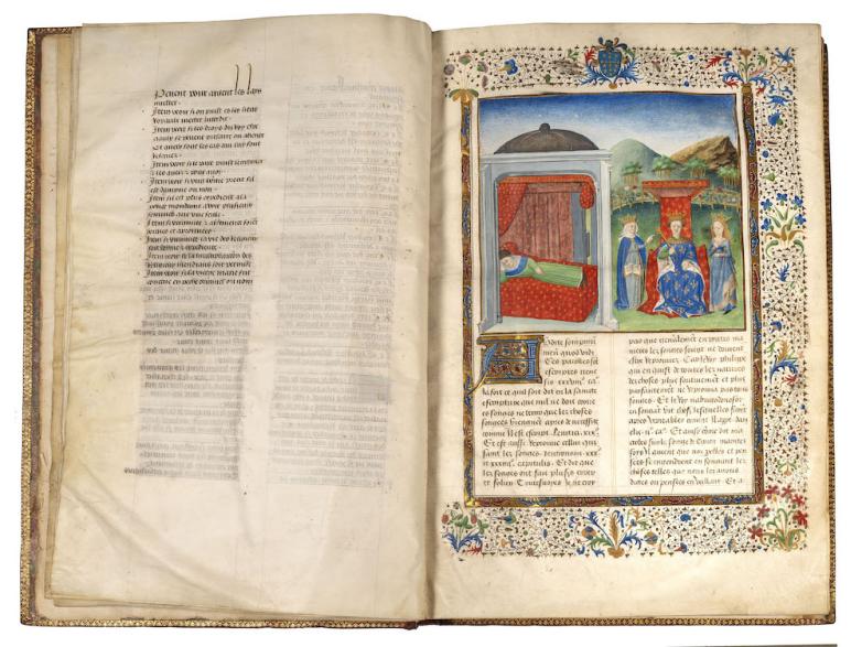 Dr. Jörn Günther Rare Books’ highlights include the Crawford Hours, a characteristic example of Flemish book illumination, made around 1500; a decorated 13th-century missal for use in the diocese of Soissons in France; and the fourteenth-century "Histoire ancienne jusqu’à César and Faits des Romains," possibly made for the French King Charles V.