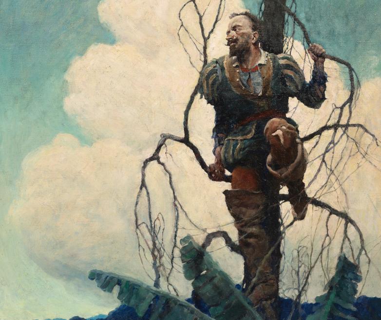 Detail from N.C. Wyeth’s When Drake Saw for the First Time the Waters of the South Sea, 1906. Estimate: $200,000-400,000