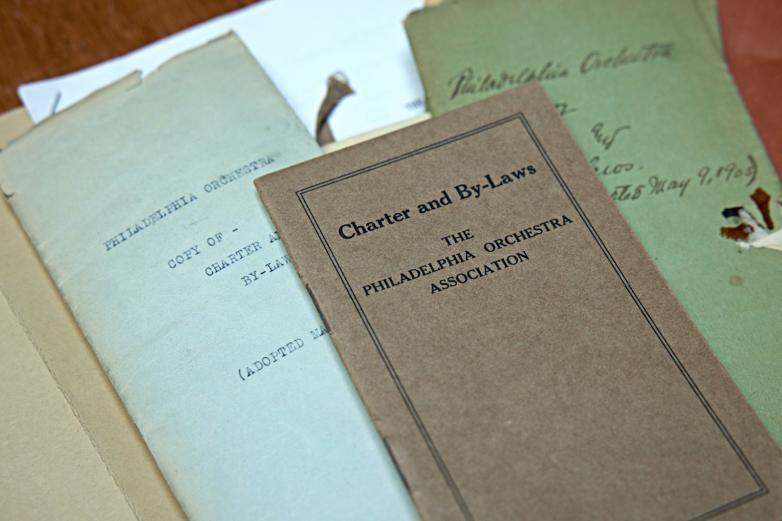 The records of The Philadelphia Orchestra encompass a wide range of formats: printed and published matter, manuscript materials, photographs, original audio/visual materials, commercially released LPs and recordings, and more. There are account books and ledgers dating from 1900 that document the early finances of the Orchestra as well as early administrative, legal, and personnel records. Major categories include board minutes, concert programs, and files of conductors, musicians, and guest artists.