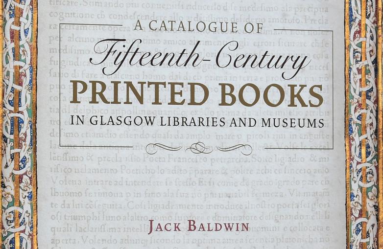 Jack Baldwin, A Catalogue of Fifteenth-Century Printed Books in Glasgow Libraries and Museums, 2 vols (Woodbridge: Boydell and Brewer, 2020).