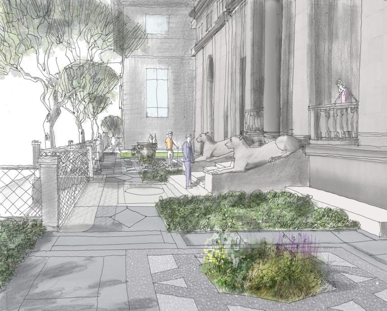 The exterior restoration of J. Pierpont Morgan’s Library that is currently underway presents a unique opportunity to reimagine its setting. The existing landscaping—essentially a simple lawn—does little to complement the architecture of the Library, nor does it encourage visitor interaction with the landmark building’s exterior. By creating new spaces and opportunities for engagement and drawing attention to the site, the project will reinvigorate this portion of the Morgan’s campus, which was somewhat removed from visitors’ experience when the Morgan’s entrance shifted from 36th Street to Madison Avenue as part of the 2006 Renzo Piano–designed expansion.
