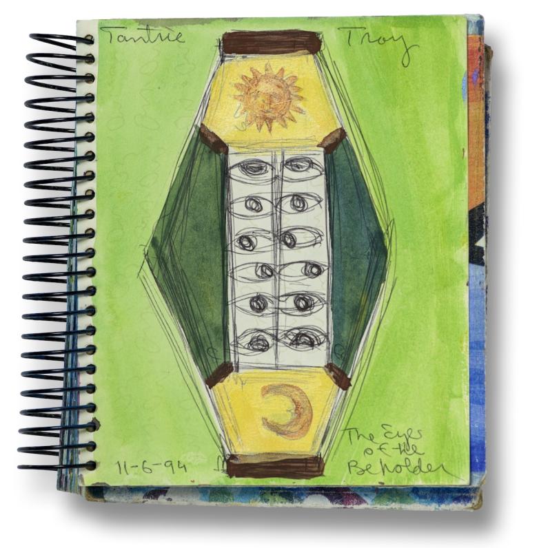 Betye Saar, sketch for Eyes of the Beholder, November 6, 1994. Watercolor and ballpoint pen on paper.