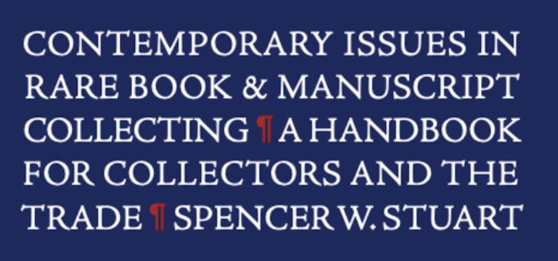 Spencer W Stuart, Collections Advisor, is pleased to announce the publication of Contemporary Issues in Rare Book & Manuscript Collecting to be published January 2023.
