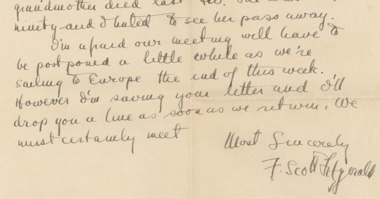 When Fizgerald wrote to his cousin in the spring of 1924, he was already a bestselling novelist, living with Zelda and their daughter in Great Neck, Long Island. They were about to embark on a trip to Europe, where, as it turns out, he would begin writing The Great Gatsby later that year.