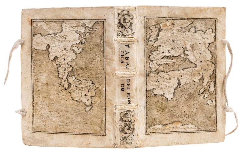 A copy of the 1582 edition of Anania's Cosmographia in a decorated Pillone binding, offered at Forum Auctions this week.