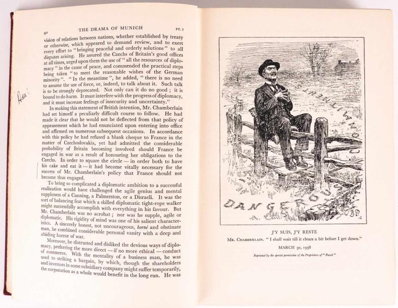 * John W. Wheeler-Bennett's Munich. Prologue to Tragedy, a 1948 first edition presentation copy inscribed, "For Anthony Eden, with warmest best wishes and very many thanks, John W. Wheeler-Bennett, May, 1948". Commenting on Sir Nevile Henderson, British Ambassador to Germany from 1937-39, Eden writes, "Disastrous man and disloyal to me (estimate £700-1,000)