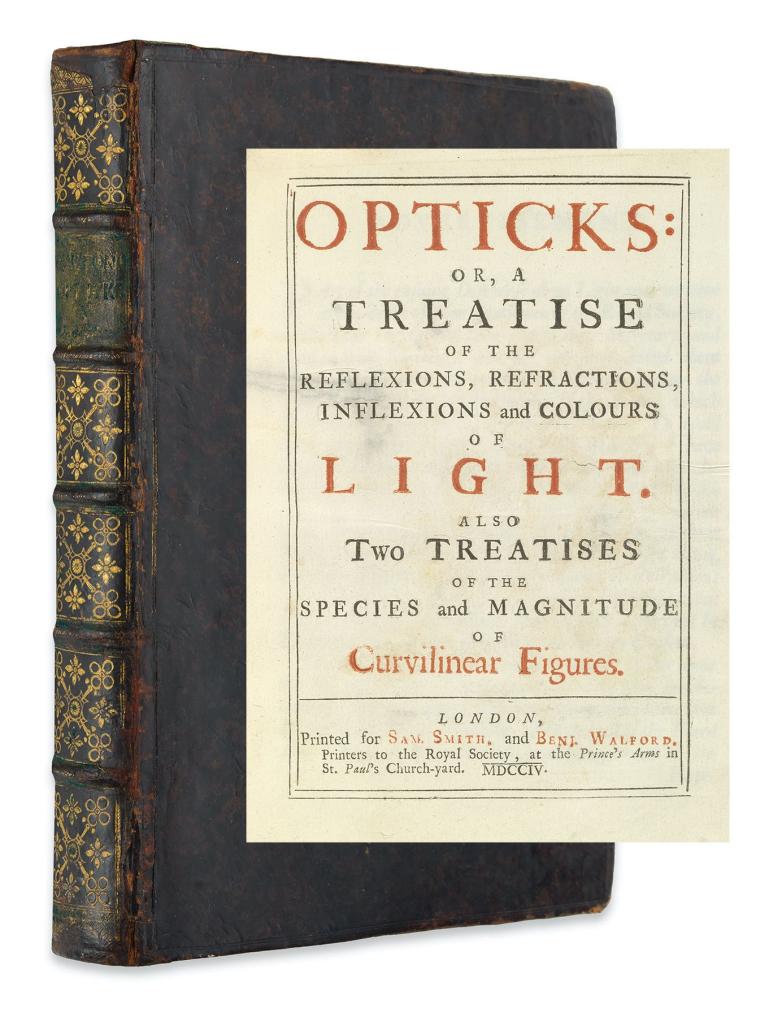 Sir Isaac Newton, Opticks, first edition, first issue, London, 1704. Sold for $40,000.
