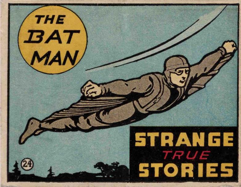 The Bat Man card, one of 24 cards in Wolverine’s 1936 Strange True Stories gum card set. Sold for $64,906 against an estimate of $10,000-$20,000