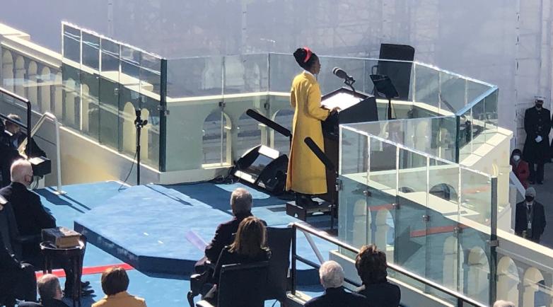 Poet Amanda Gorman at the 2021 presidential inauguration.