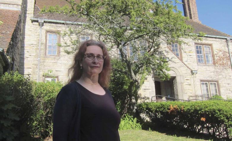 Artist and author Audrey Niffenegger pictured here in front of the Harley Clarke Mansion in Evanston, Illinois. The building will house a new book arts organization that she is spearheading.