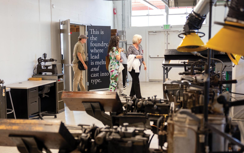 The bindery, letterpress rooms, and other spaces invite the public to see books made up close.