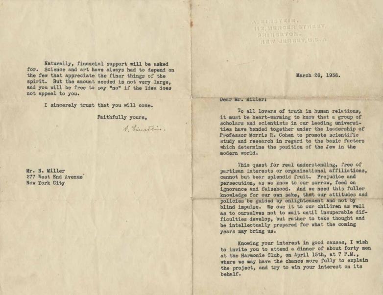 “The Einstein letter was written six months after Germany passed the Nuremberg Laws,” Chanes said. “Addressed to Mr. Miller, who had invited Einstein to an academic meeting of the minds to pontificate on what should be done, the renowned physicist discusses the importance of studying Jews in the modern world.”