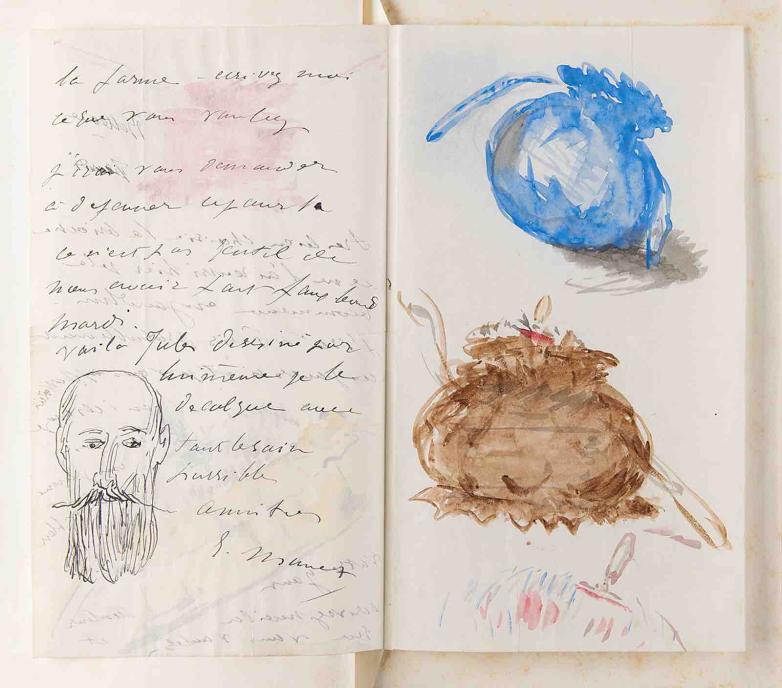 Edouard Manet Illustrated Autograph Letter Signed with Watercolors. Estimate: $100,000