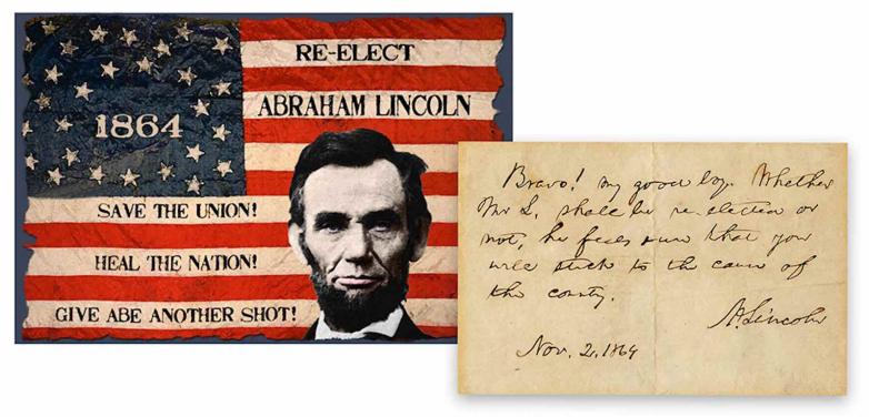 Abraham Lincoln penned a cheerful note to an unidentified young man, probably his eldest son Robert, on the cusp of the November 8, 1864 presidential election. Lincoln wrote: “Bravo! my good boy. Whether Mr. L. shall be re-elected or not, he feels sure that you will stick to the cause of the country.” Lincoln’s use of the third person is unusual, though not without precedent. The jubilant tone of Lincoln’s note belies the fact that he fully expected to lose the 1864 election to George B. McClellan.